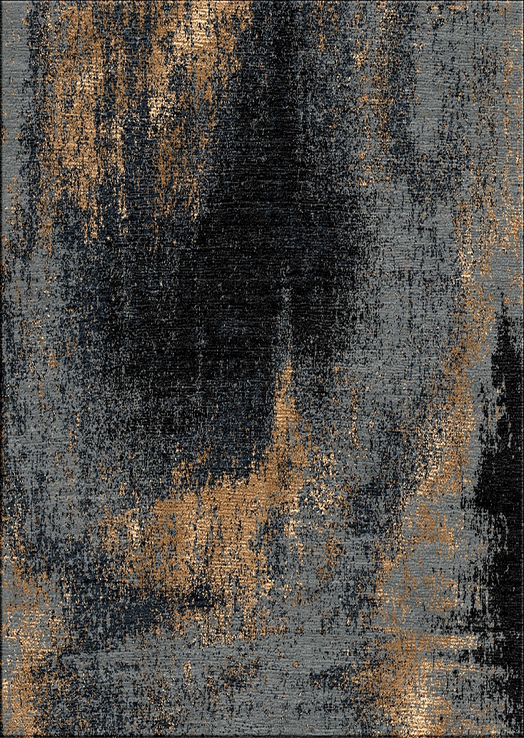 Washed Denim Rug – Noir 300x240cm. Blended dark grey-black wools & copper coloured silks gives a luxurious highlight to a dramatic rug. Made entirely by hand using the traditional method of hand knotting, built to last generations.