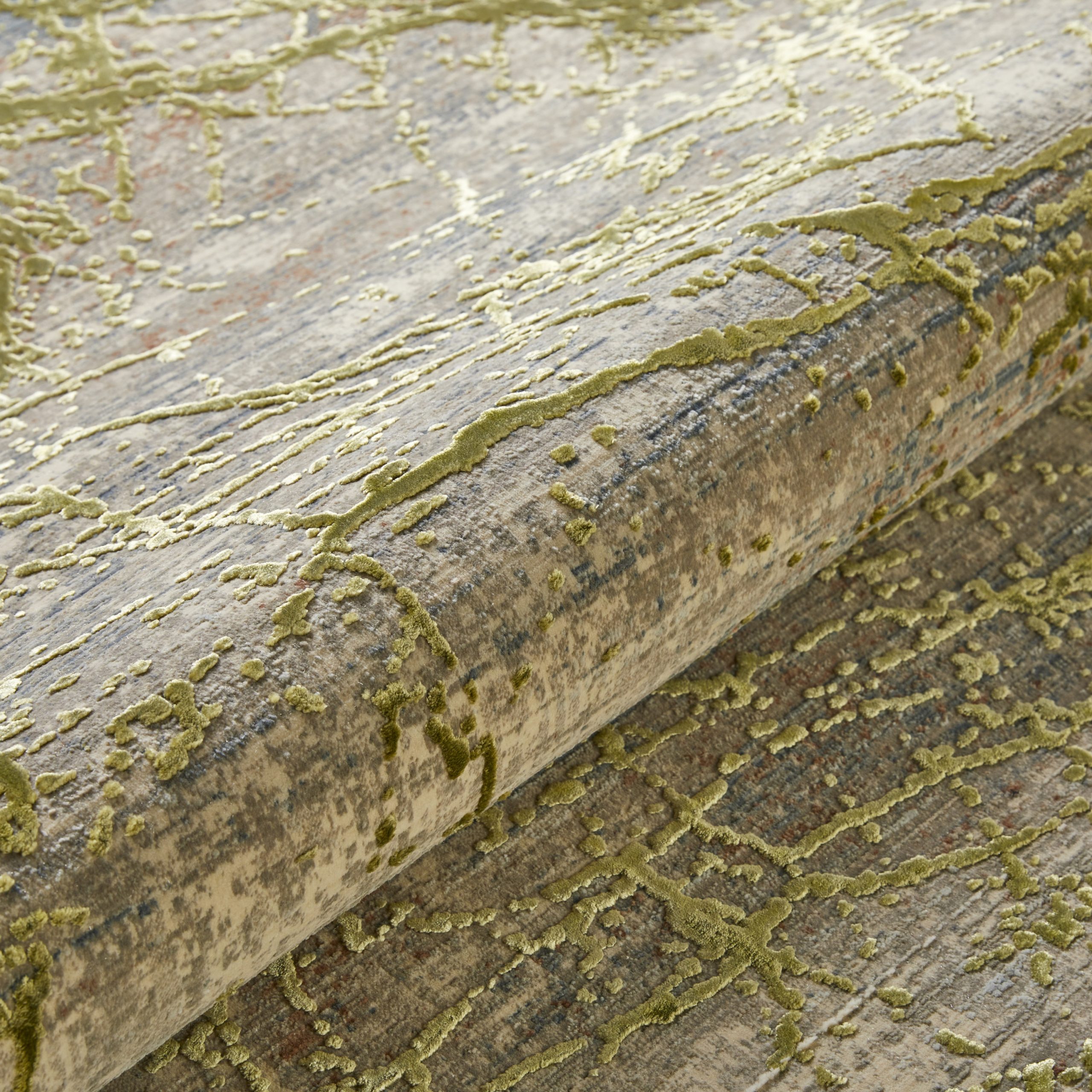 Baker Street Rug – Neon Green This stunning modern rug combines a glowing emerald with neutral tones to form a tranquil abstract design. It is created in Turkey on a power loom, using threads of polyester and art silk. These materials give the high and low pile texture a lustrous shimmer, perfect for a bedroom or living room rug. This collection has the finest knot count and intricate detailing of any power loomed rugs. They truly are heaven underfoot.