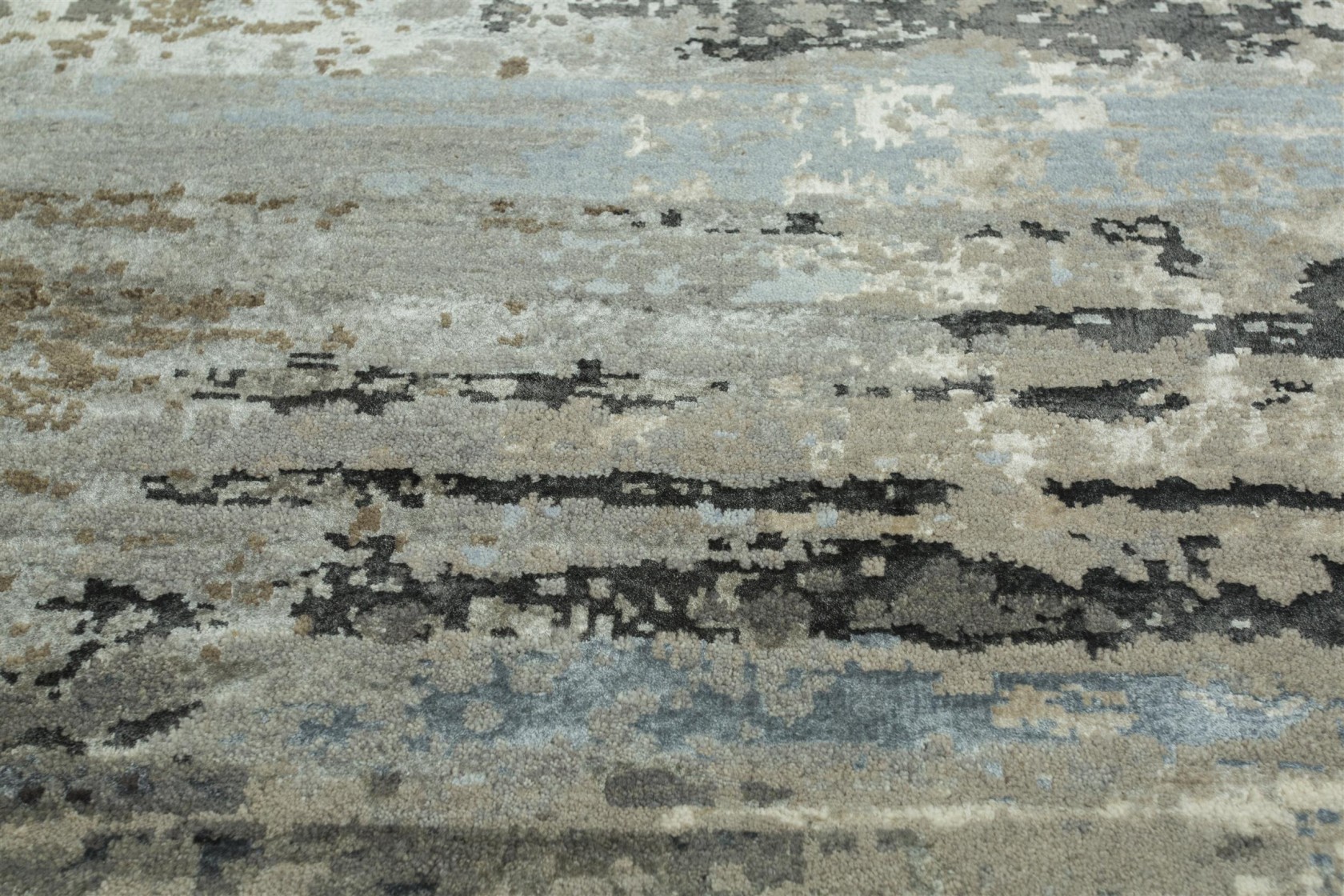 Bond Rug – Classic Grey Liquorice This stunning designer rug combines pastel blues with strong blacks for a unique abstract design. Created by the skilled weavers of Rajasthan, every hand knotted rug features contrasting wool and silk finishes. With their understated contemporary designs and outstanding quality, our ‘Bohemia’ rugs are a popular choice for any stylish home.