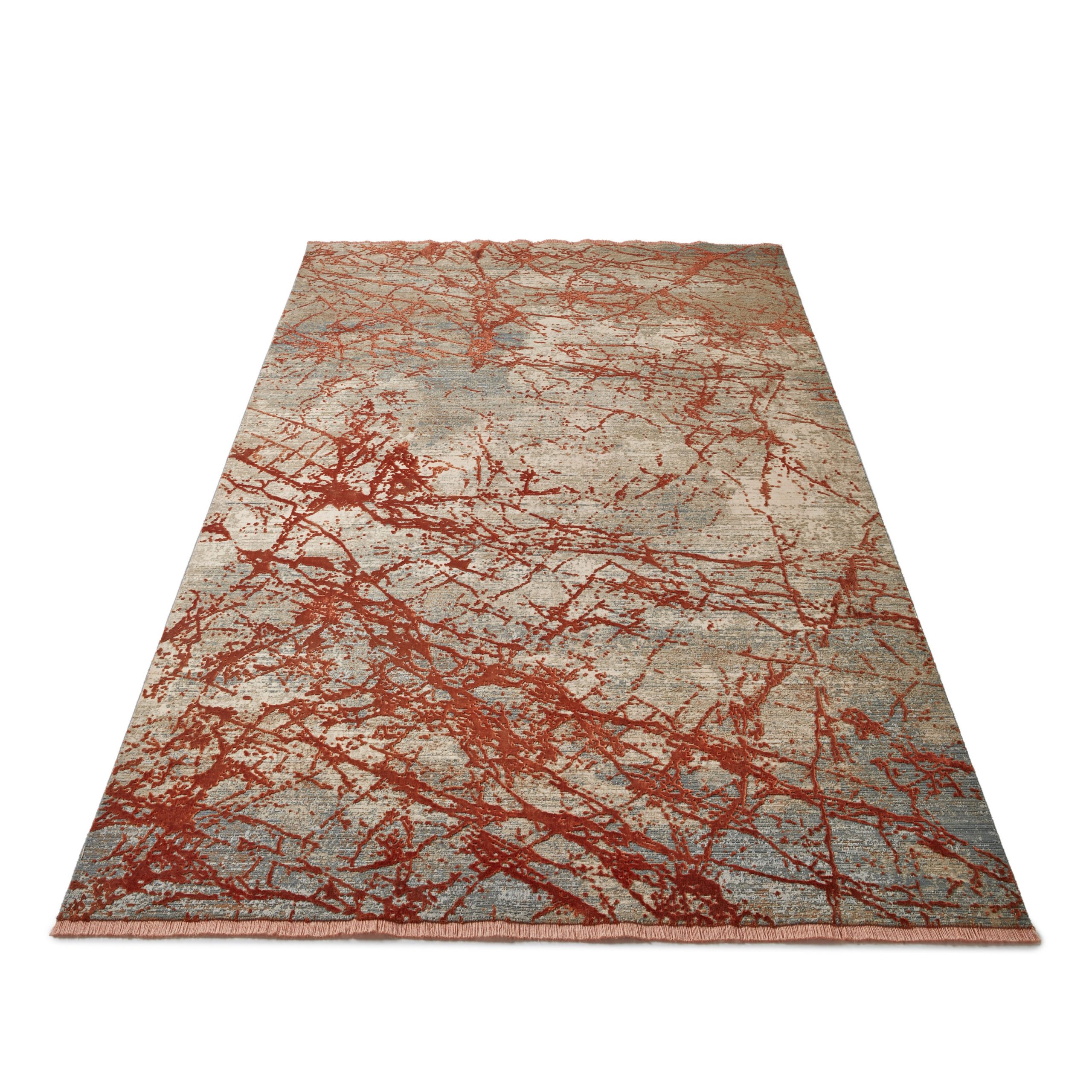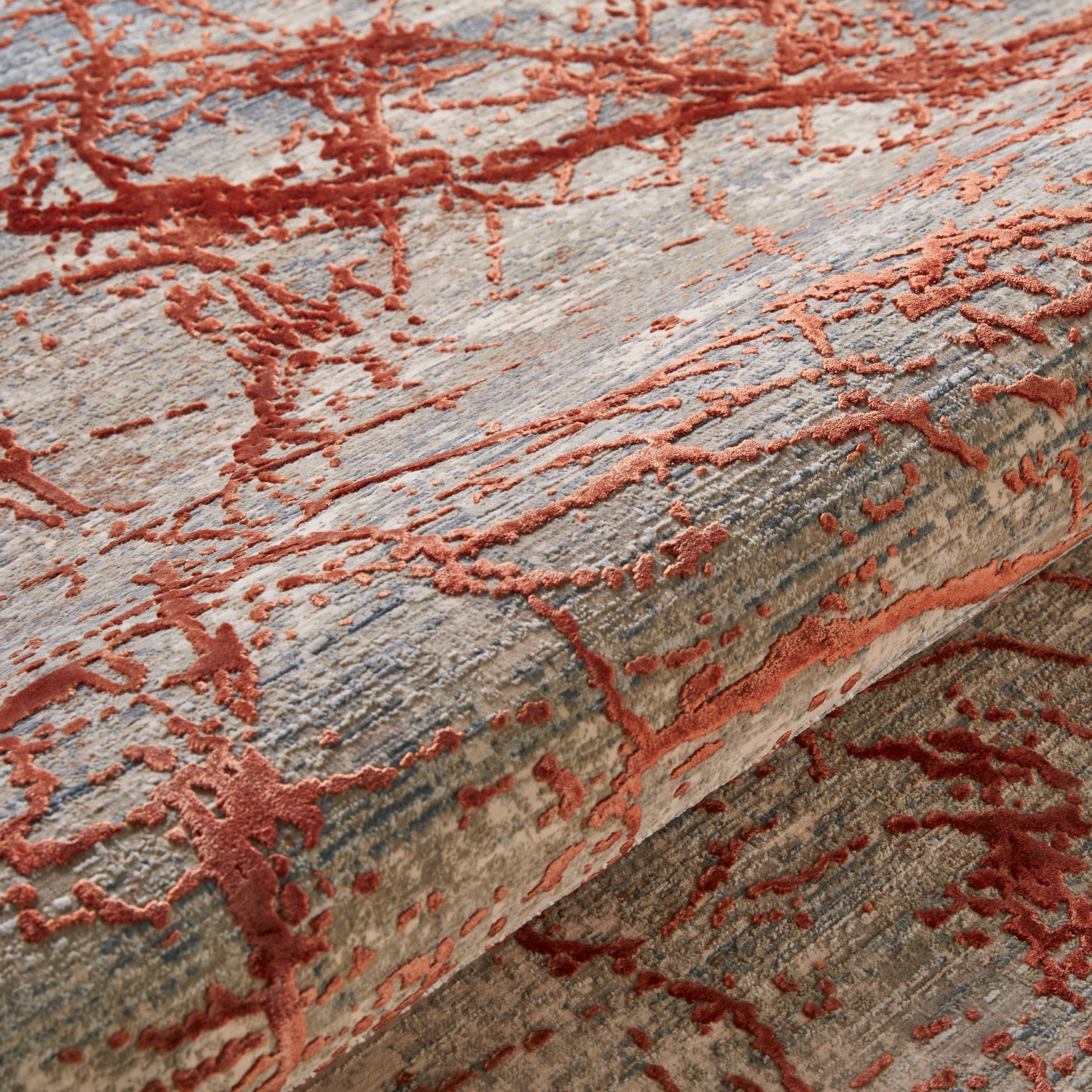 London Bridge Rug – Neon Orange This stunning modern rug combines a burnt orange with neutral tones to form a tranquil abstract design. It is created in Turkey on a power loom, using threads of polyester and art silk. These materials give the high and low pile texture a lustrous shimmer, perfect for a bedroom or living room rug. This collection has the finest knot count and intricate detailing of any power loomed rugs. They truly are heaven underfoot.
