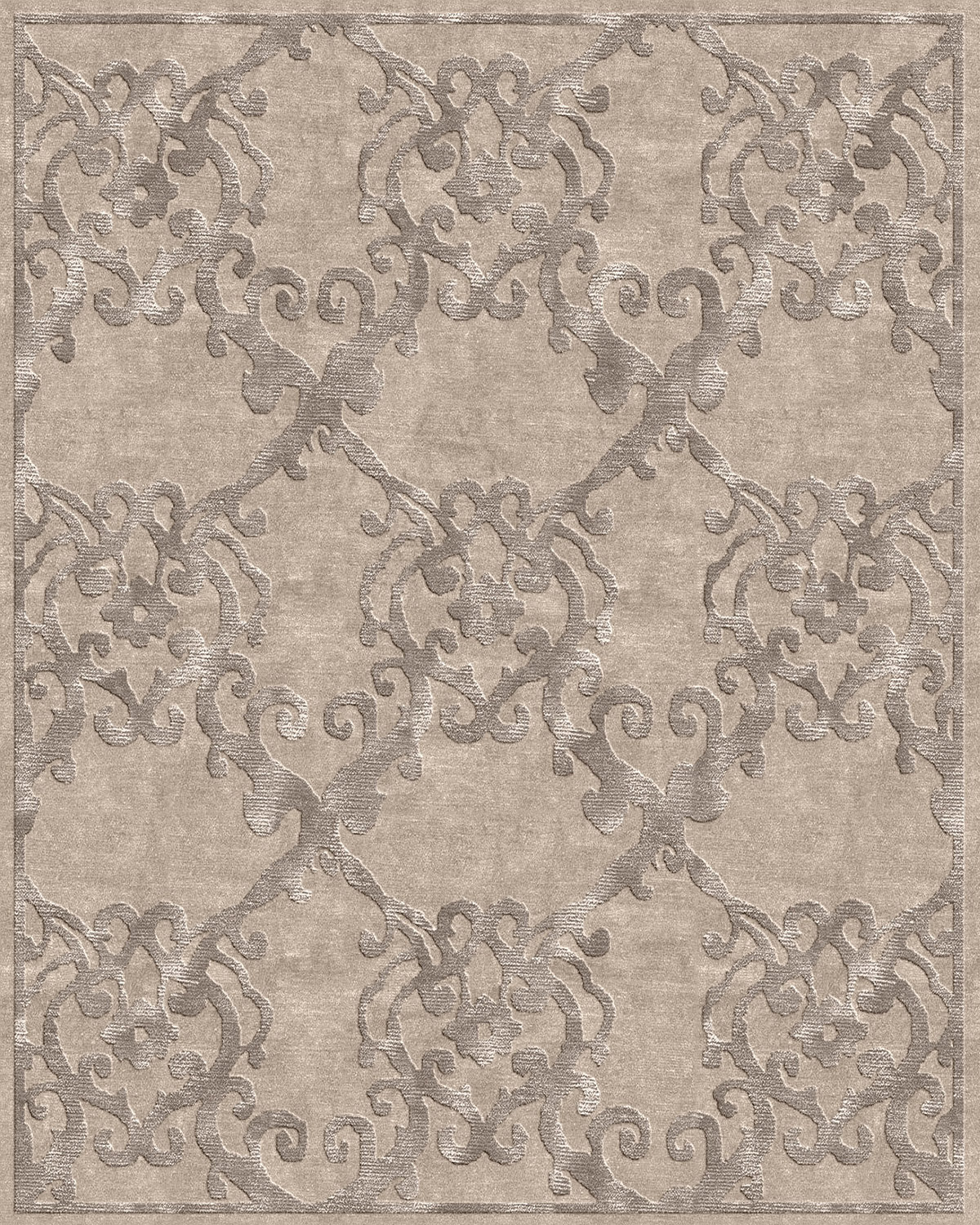 Pascale Rug – Pewter. With a classical motif created in luxurious raised pile silk, this rug is the image of elegance. Neutral grey tones make this the perfect addition to many a contemporary space. Every piece is created by a team of skilled artisans who complete every stage of the process using traditional methods. From the preparation of the wool and silk, to constructing the rug knot by knot, this craftsmanship delivers a rug that will last generations.
