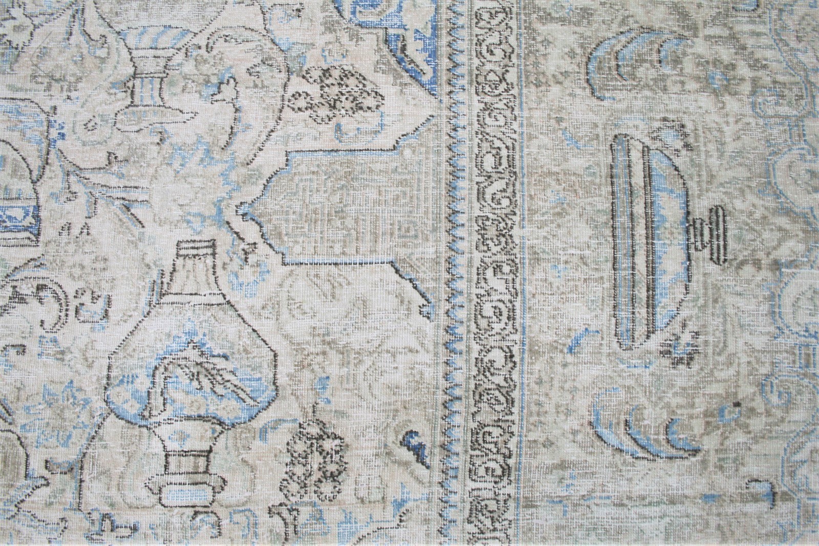 Persia Reloaded Rug – 2637. This vintage style rug is created from a genuine Anatolian carpet. The original colours have been faded out, and the new rug given highlights of green to enhance the original design. This is a unique one-off piece is perfect for adding a sense of history to a modern or traditional setting.