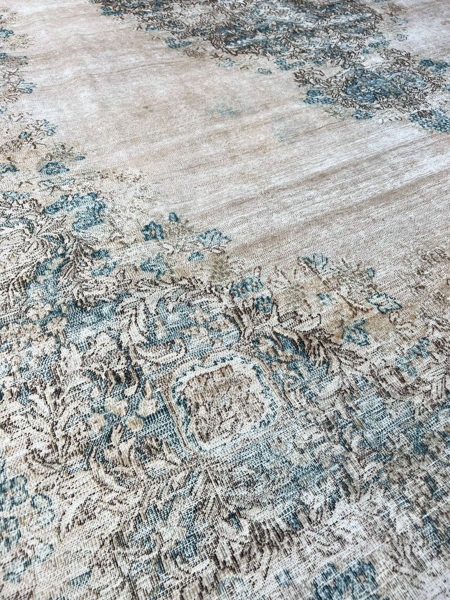 Persia Reloaded Rug – 2724. This large one-off vintage rug, this faded beauty is created from a genuine vintage Persian, intentionally distressed to accentuate its antique appearance. Original bright colours are washed out to create a colour palette that is more accommodating to todays interiors, a look that blends seamlessly with both traditional and contemporary styles. Full of character and history, this is a classic Persian carpet reborn.