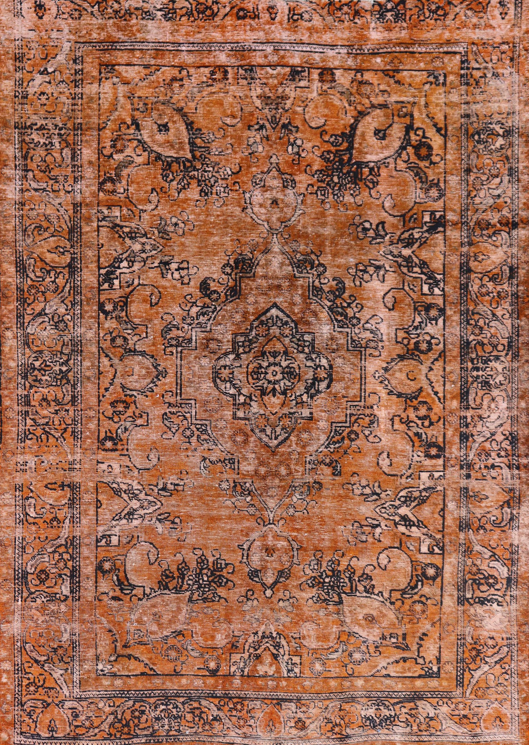Persia Reloaded Vintage Rug – Burnt Orange. A unique one-off vintage rug, this faded beauty is created from a genuine vintage Persian, intentionally distressed to accentuate its antique appearance. Original bright colours are washed out to create a colour palette that is more accommodating to todays interiors, a look that blends seamlessly with both traditional and contemporary styles. Full of character and history, this is a classic Persian carpet reborn.