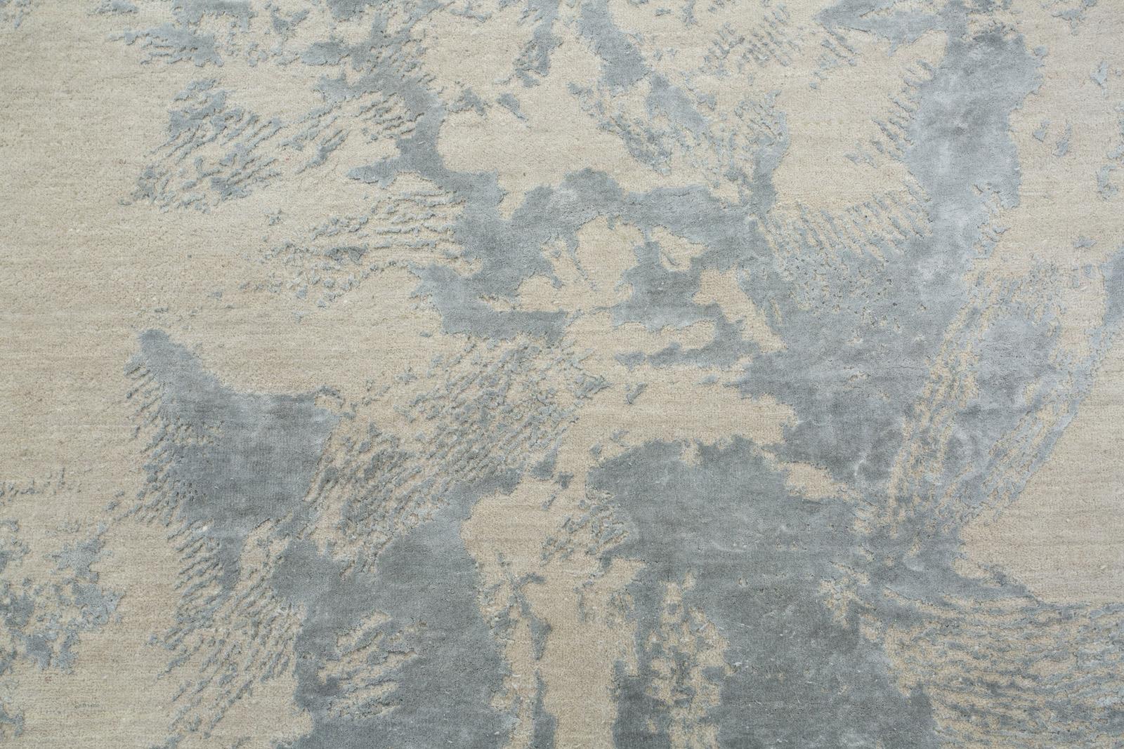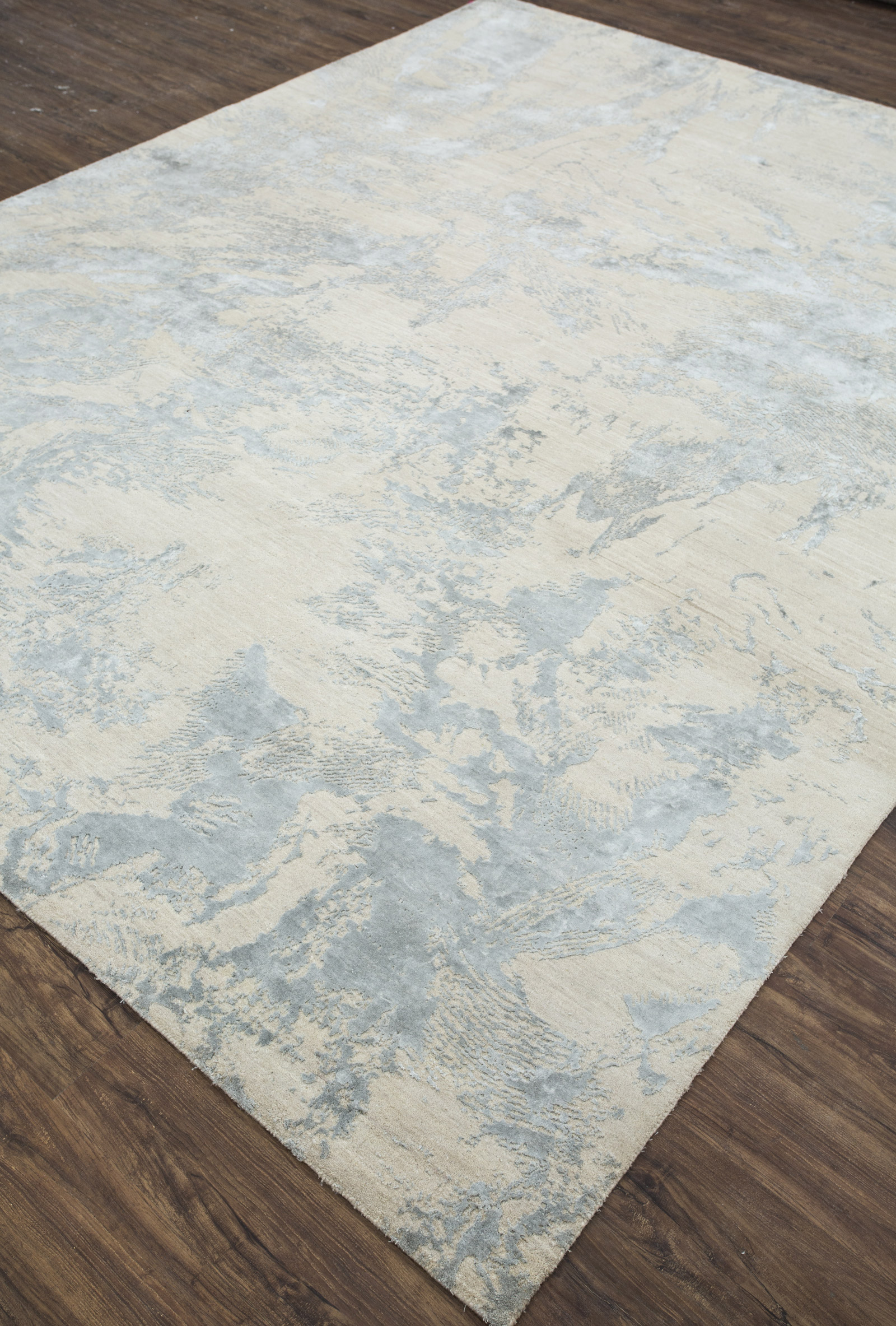 Sapphire Rug – Antique White Aquatic Muted blue swirls gather in this fascinating abstract rug design. Created by the skilled weavers of Rajasthan, every hand knotted rug features contrasting wool and silk finishes, defined by hand carved high and low pile. With their understated contemporary designs and outstanding quality, our ‘Bohemia’ rugs are a popular choice for any stylish home.