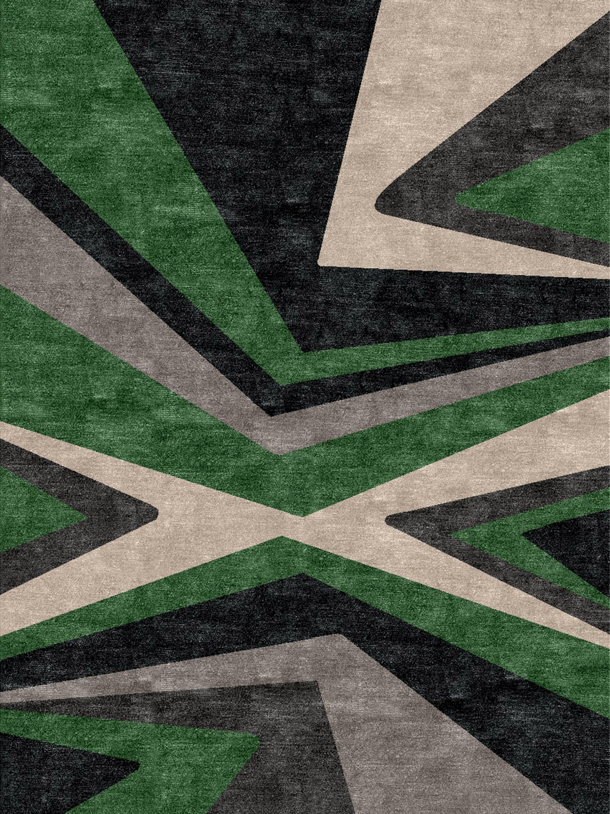 Starburst Rug – Green. Bold bursts of green form this amazing modern rug design. Created using traditional methods and natural materials, this is a superior quality rug which is full of character and texture.