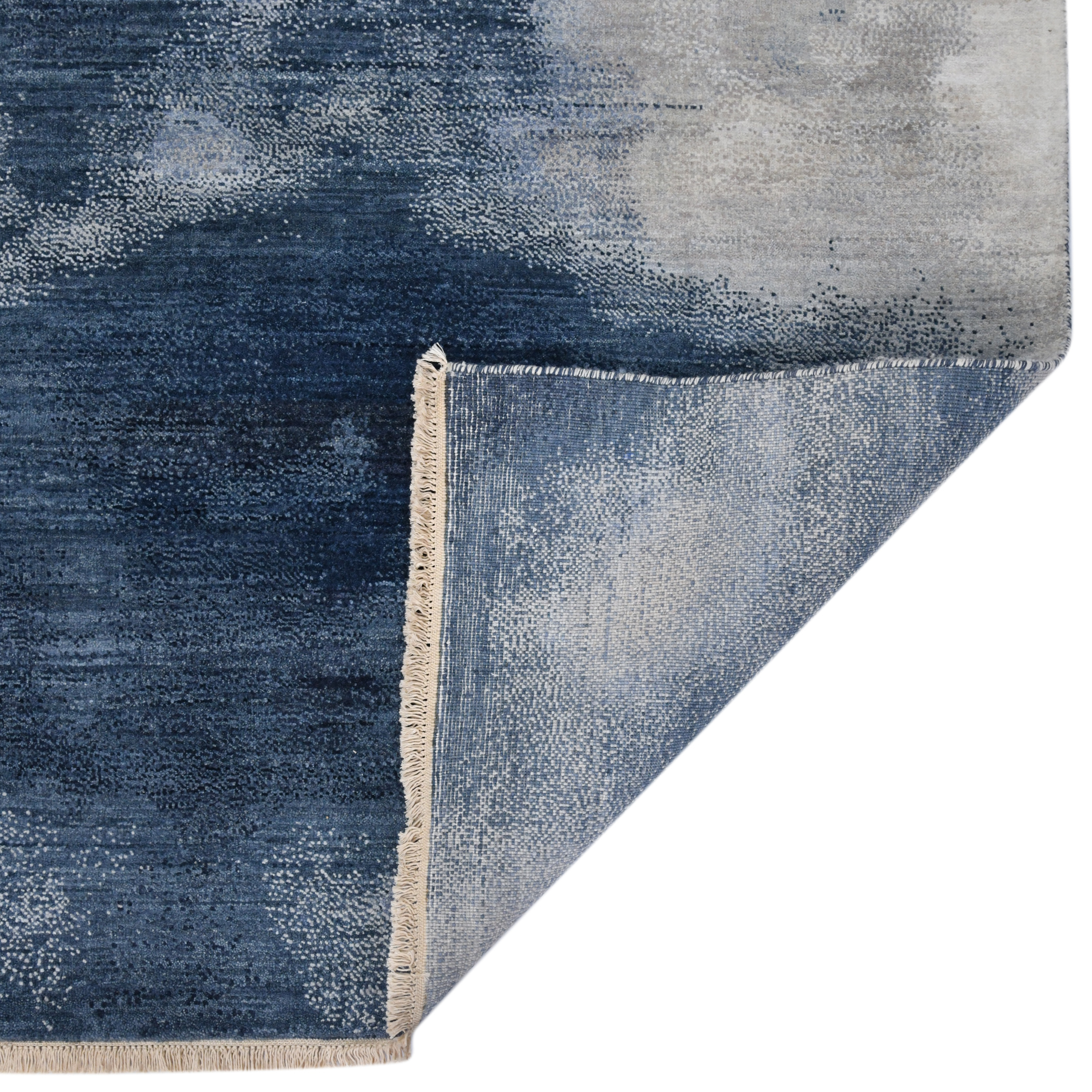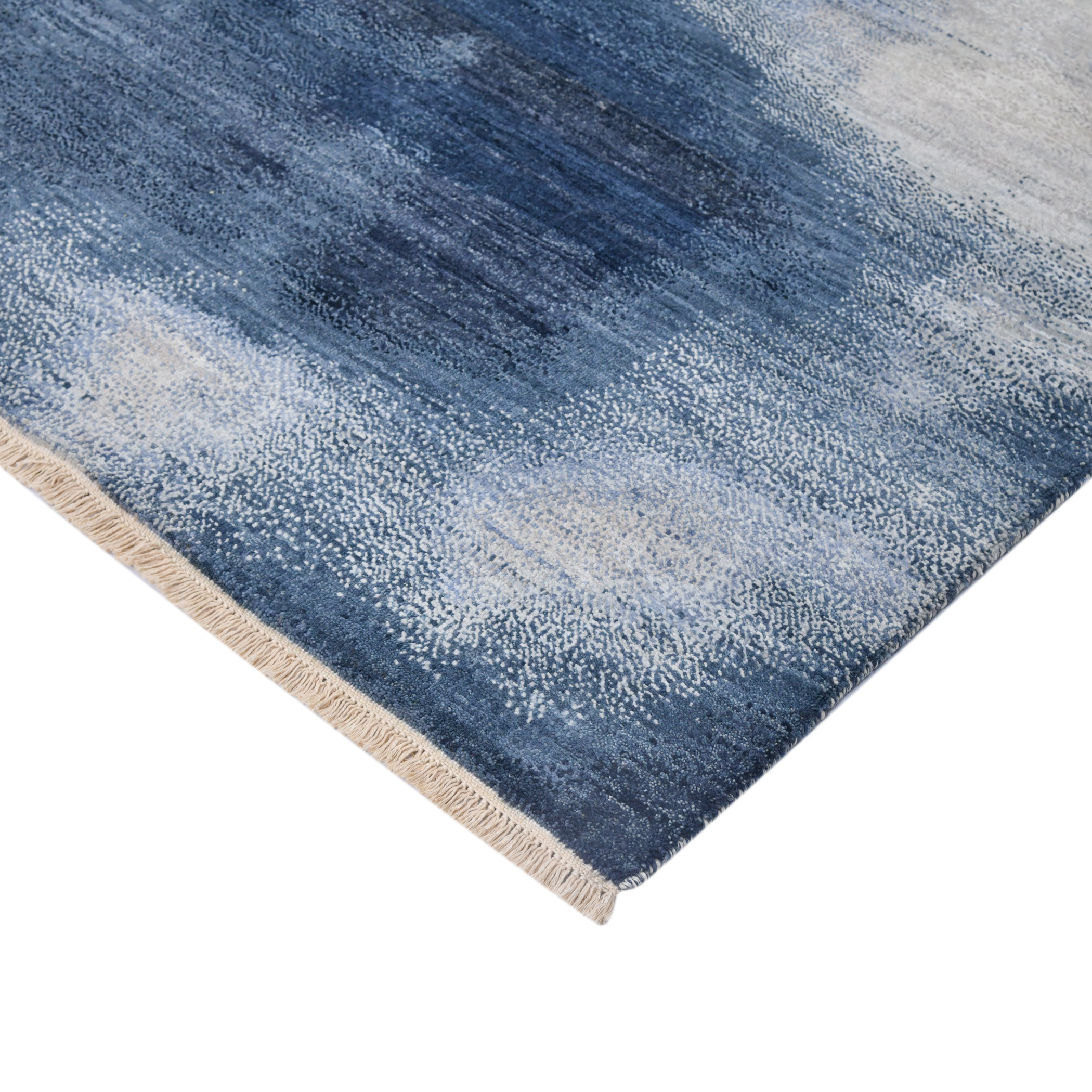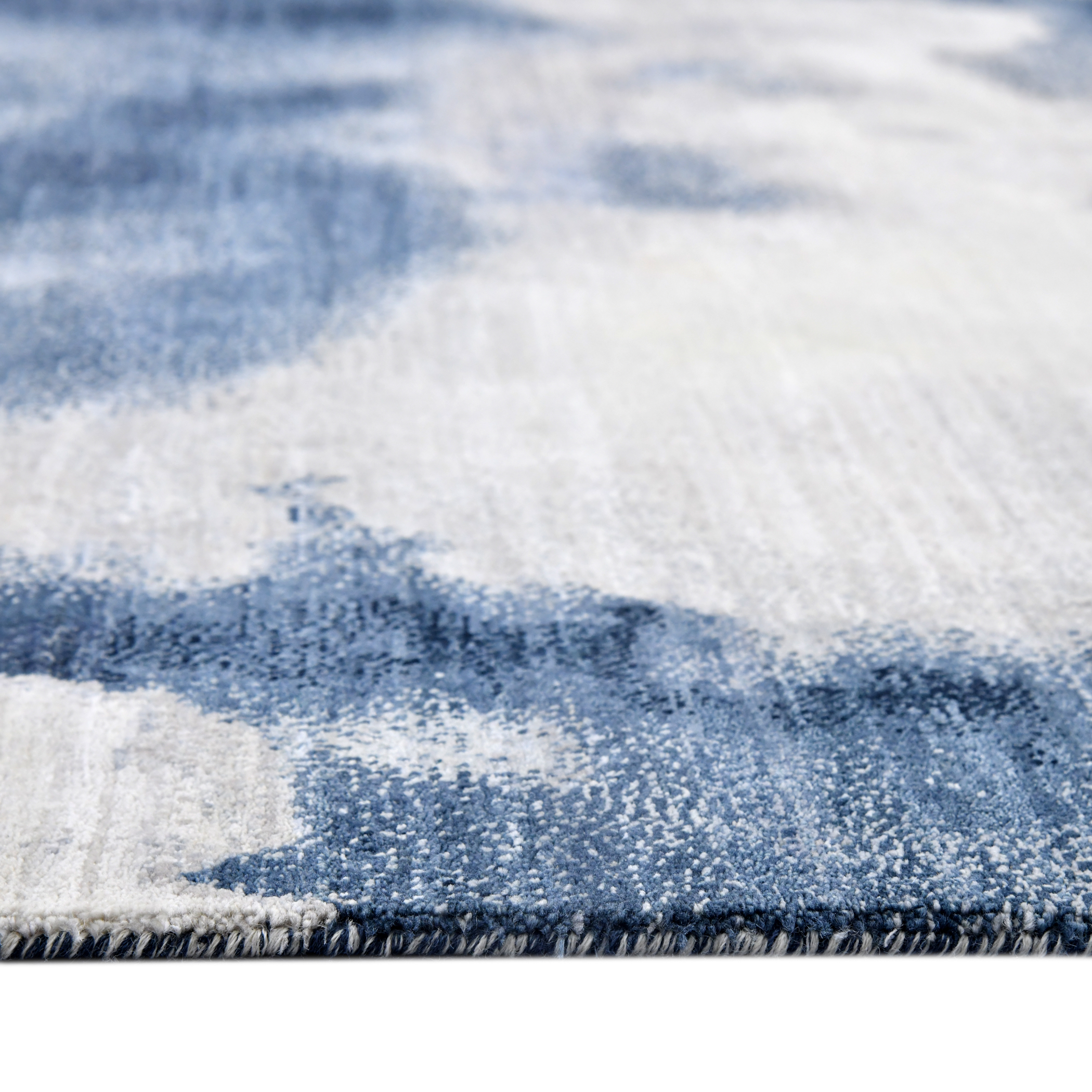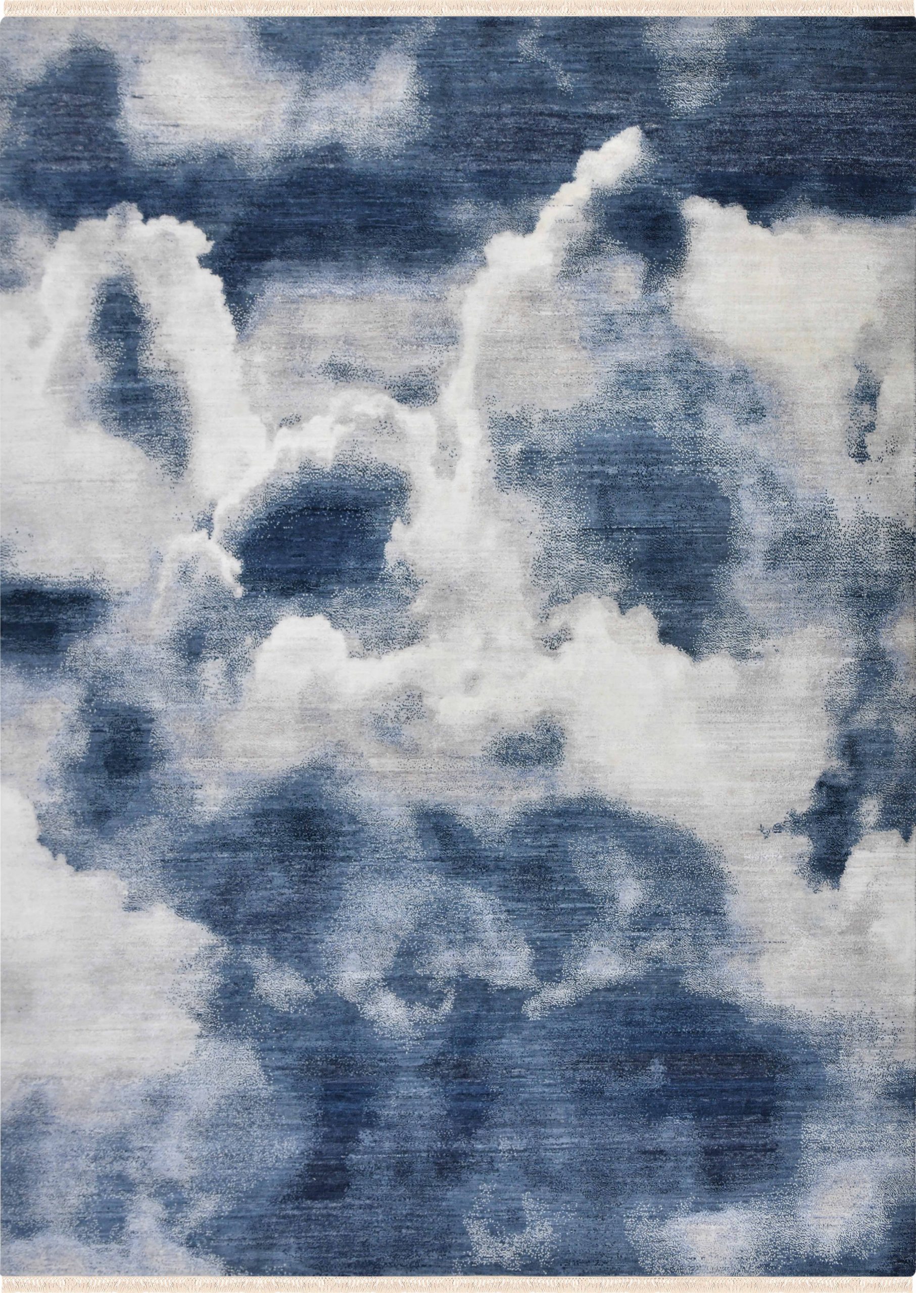 Summer Sky Clouds Rug Inspired from the London Skyline, this beautiful luxurious rug combines cool blues and warm neutrals for a organic natural flowing design. Each piece is hand knotted rug is created individually by a team of skilled artisans, and this level of intricate colour variation requires the finest of weaves.