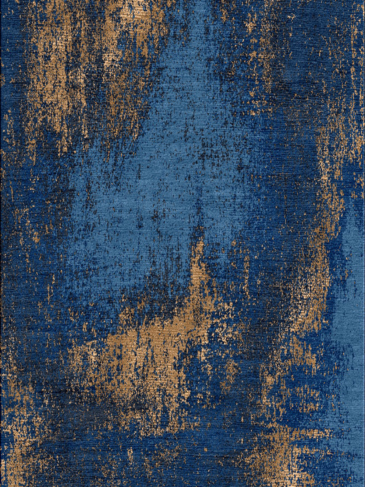 Washed Denim Rug – Copper. Blended Indigo wools & copper coloured silks gives a luxurious highlight to a dramatic rug. Made entirely by hand using the traditional method of hand knotting, built to last generations.