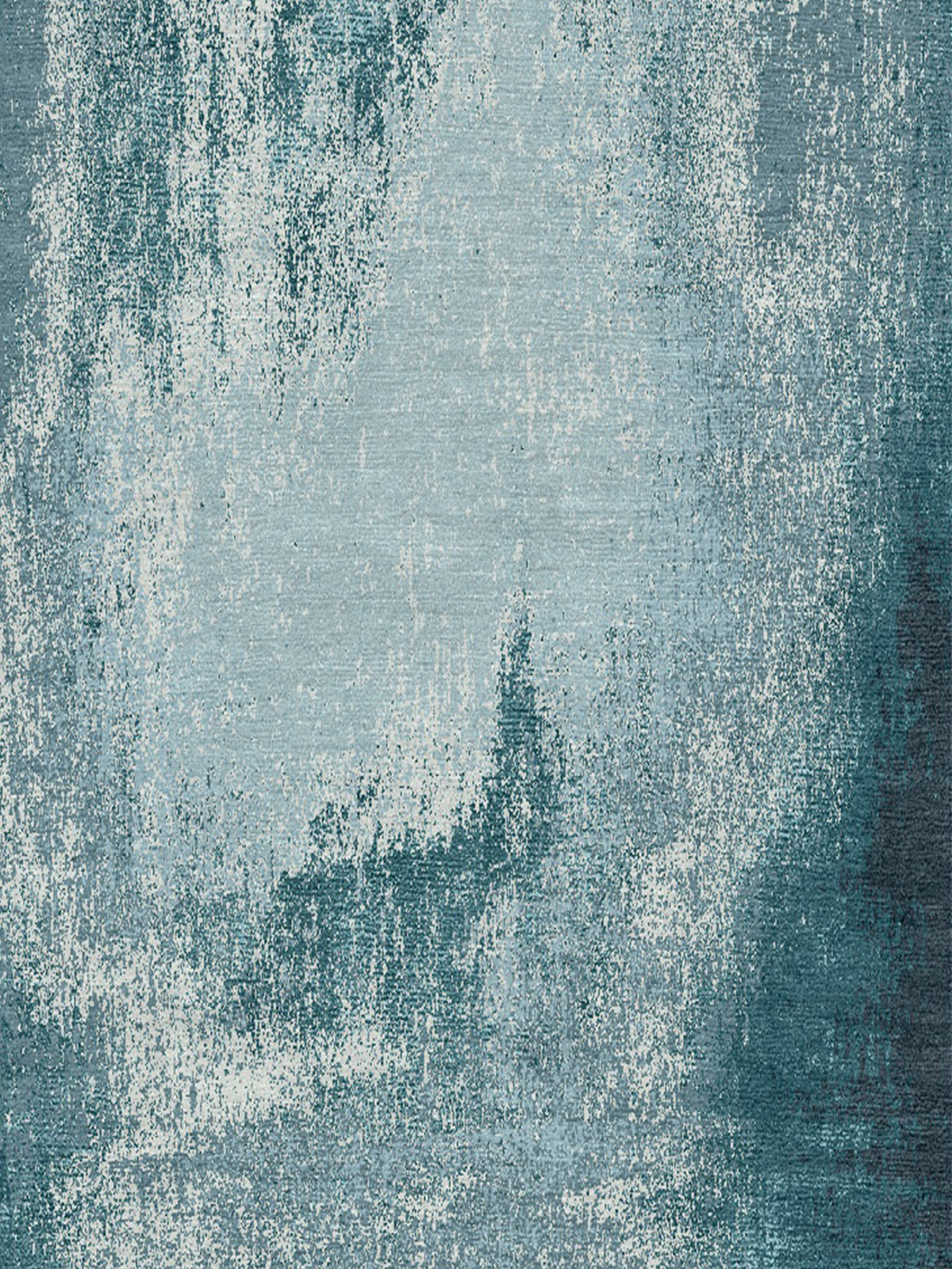 Washed Denim Rug – Teal. Rich teal coloured silk gives a luxurious highlight to a bed of pale blues. This rug is created entirely by hand using the traditional method of hand knotting, made to last for many decades to come.